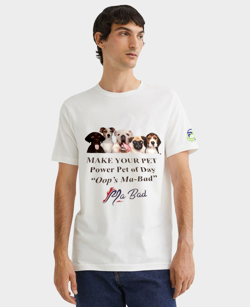 This regular-fit t-shirt in white color is made from soft and breathable cotton fabric. It has double-needle stitches on the sleeves, neck, and bottom. The crew neck gives a cool and chic look when paired with your favorite denim jacket and trouser. It comes in all sizes and is available for a custom design that includes your loving pet. A simple white t-shirt is always the best choice for the burning summer.