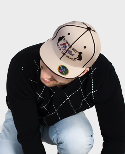 This tan color hat looks stylish with casual outfits and is perfect for saving you from a scorching afternoon. It is made from high-quality cotton and has adjustable straps at the back. It is lightweight and has a moisture-absorbing cotton lining at the seams. This hat comes with a standard curve bill at the front. This cream color hat with beautiful black lining is available for a custom design with your pet.